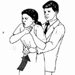 «Con el sujeto de pie se debe abrazar al mismo por la espalda con los dos brazos. En esta posición se presiona con una mano cerrada y la otra recubriendo la primera. Se debe apoyar el puño con el pulgar sobre el abdomen y presionar hacia el centro del estómago, justo por encima del ombligo y bajo las costillas de la persona.»