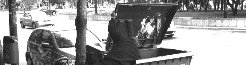 Vivo en un barrio viejo. A dos manzanas de casa hay una iglesia que dicen que lleva abierta desde hace siete siglos, o más. Esta mañana, la mañana del día de Navidad, los contenedores de basura parecían llenos de cajas vacías de juguetes,papeles de regalo arrugados, y cabezas de gamba. Había llovido, y en mi calle había tres todoterrenos de esos negros y brillantes, con las ventanes empañadas y el tubo de escape vomitando humo que se caía al suelo por la humedad. A cada coche subía, no sin cierta dificultad por la altura del vehiculo, un anciano —o dos—, luciendo lo que presumo serían sus mejores galas. Sus hijos o hijas los vienen a recoger para la comida de Navidad. Arrancan calle adelante, uno detrás de otro, como se tiran al agua en la natación sincronizada, dejando tras de sí un rastro de cascabeles. Todas las tiendas, todos los bares, tienen la persiana bajada. Excepto la de los chinos, donde las luces de colores eran lo único que te saca de la película en blanco y negro. Día santo, día de azúcar. En la esquina, un compadre revuelve en los contenedores apartando los papeles con una varilla con un gancho en un extremo. Luce un gorró de Papá Noel, mojado, y canta algo que no alcanzo a entender.