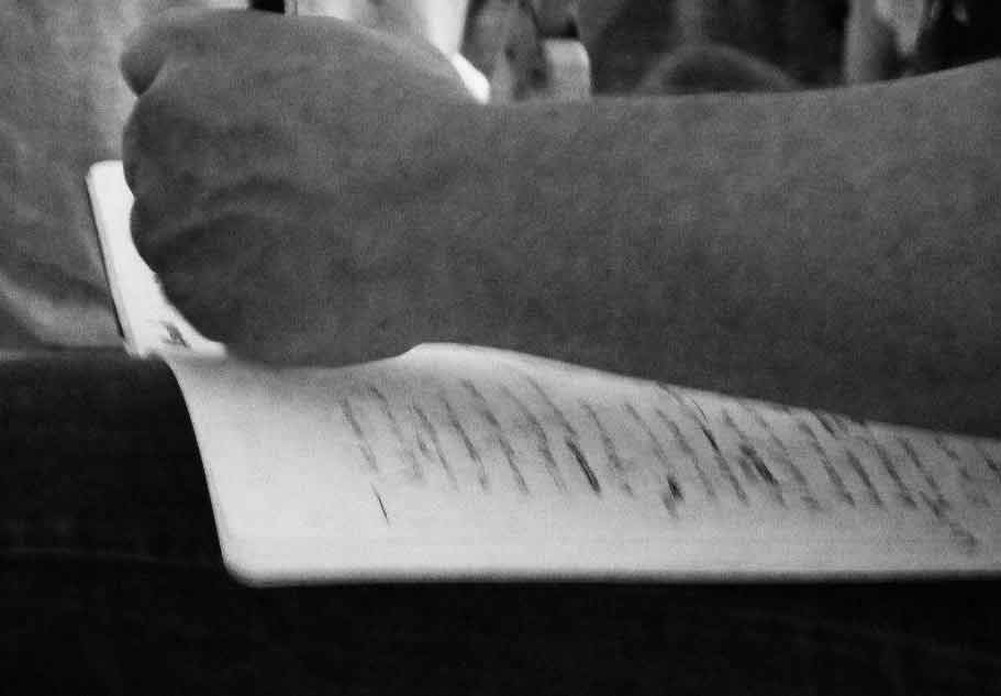 —«Hace más de trescientos poemas que no escribo la palabra horizonte. Por algo serás». 'Será', en "Pintura roja y papel de fumar".