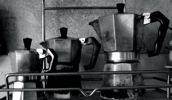 mientras borbotea el café en el fuego.