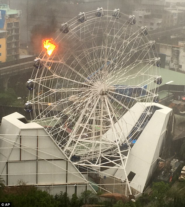 una noria ardiendo bajo la lluvia.
